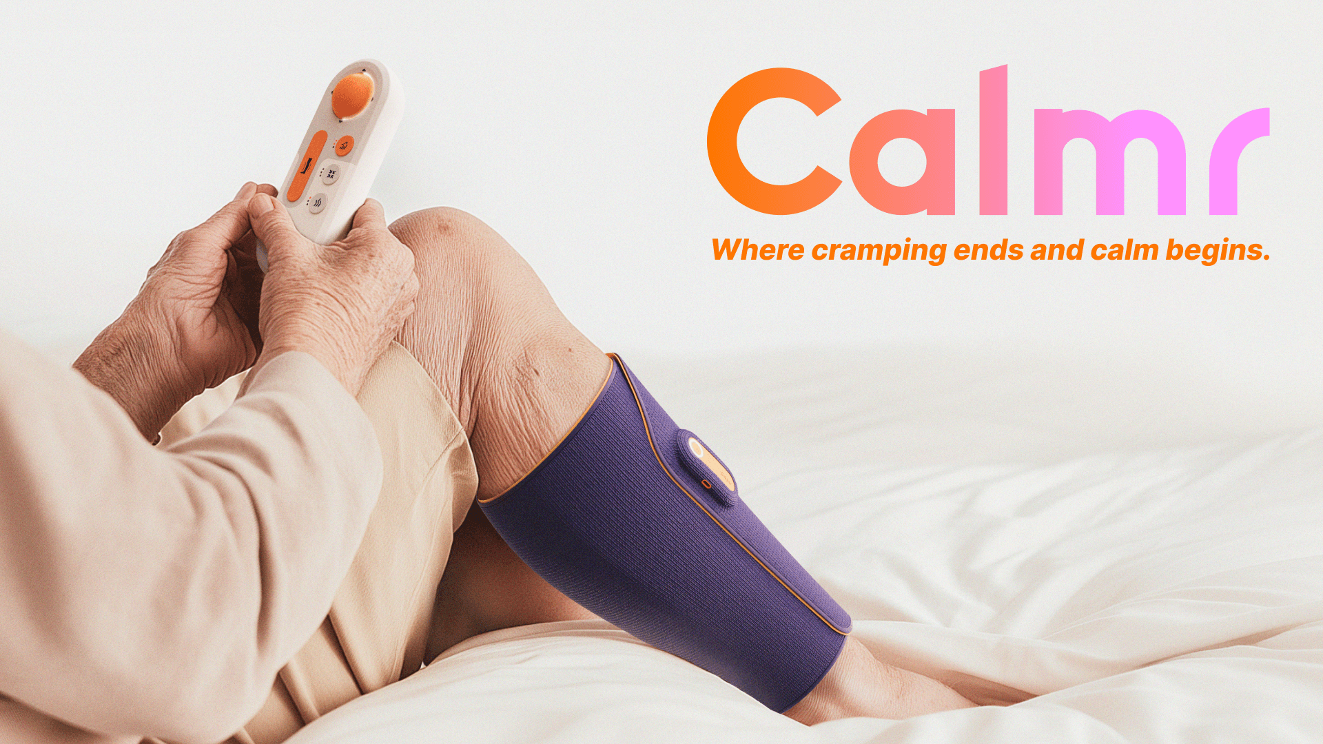 Calmr is an integrated wearable and digital solution designed with intuitive interaction to prevent and relieve nocturnal leg cramps in elderly individuals.