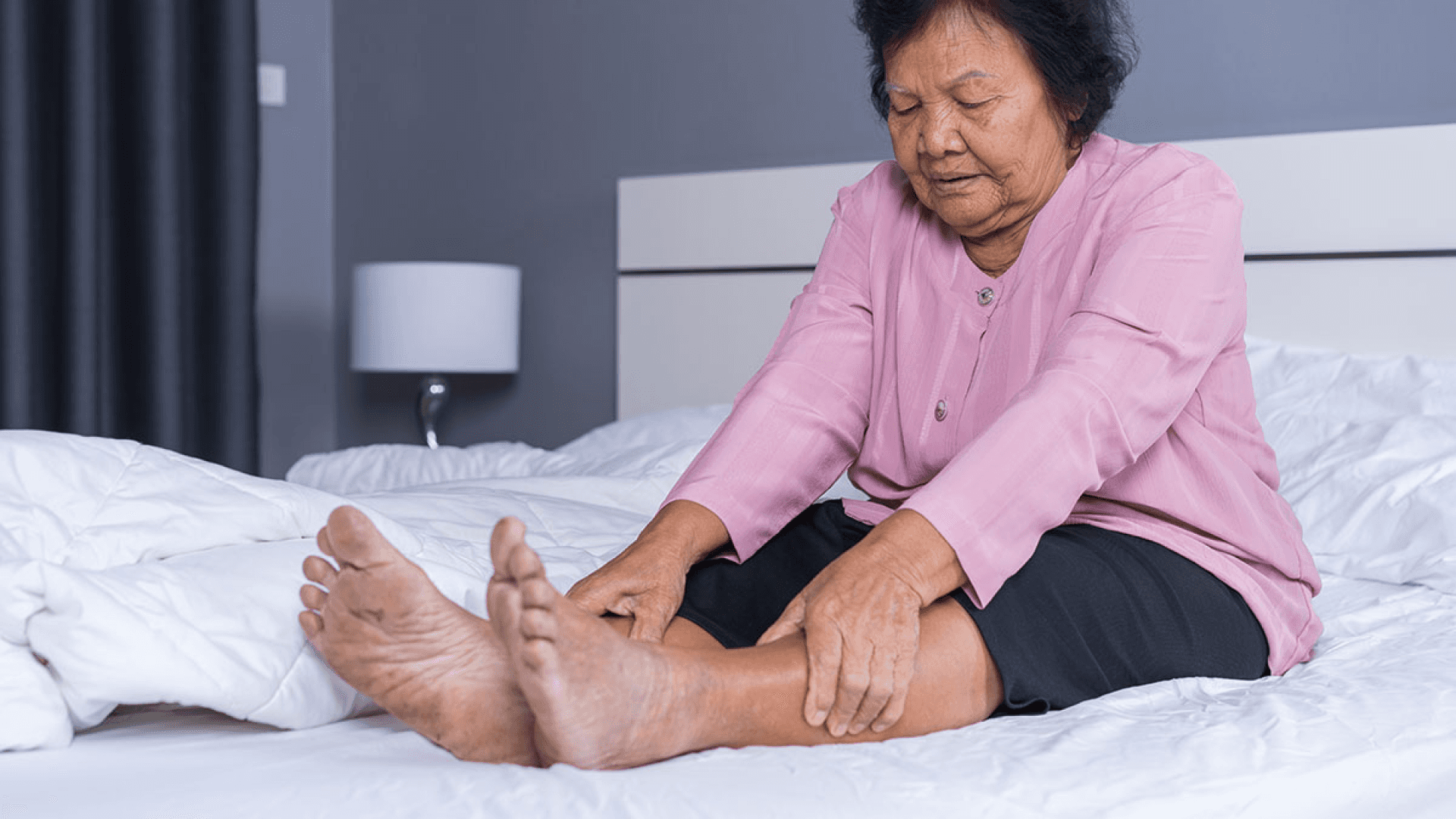 Elderly individuals frequently suffer from nocturnal leg cramps which lead to sleep disruption and seriously affect quality of life.