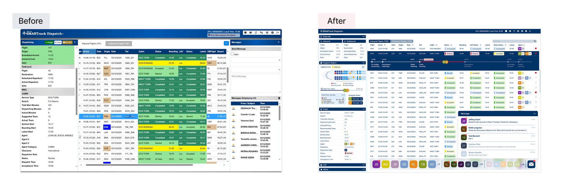 The original Smart Track interface was visually cluttered and lacked information hierarchy, making it hard for dispatchers to quickly find what they needed.
