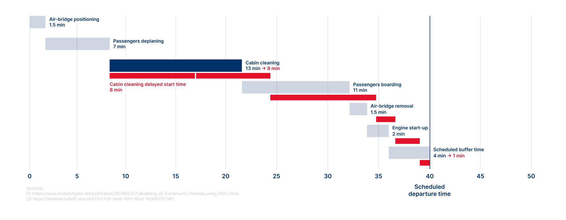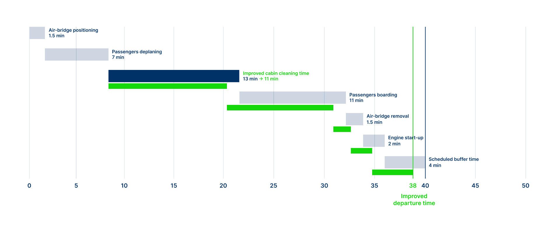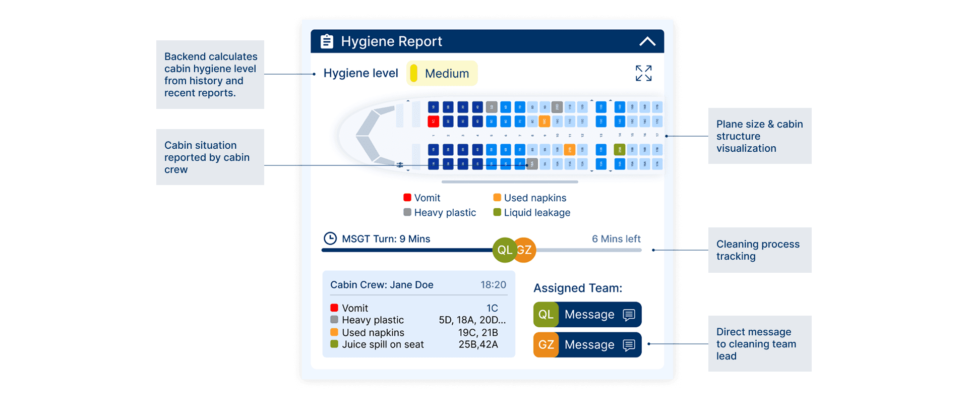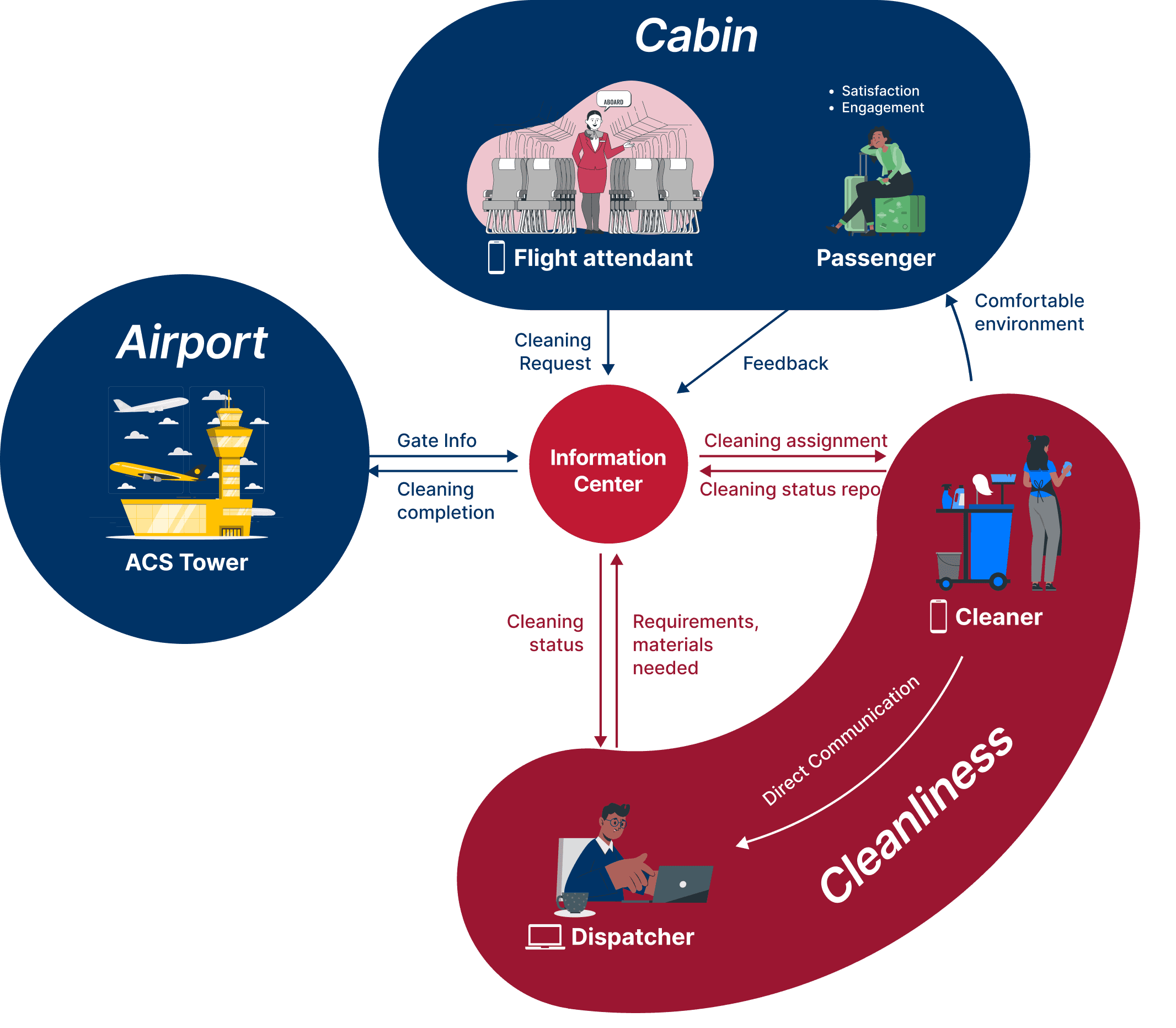 Cabin cleaning is a key task within the turnaround process’s critical path. Delays in cleaning directly extend the overall turnaround time. Current manual dispatching and inefficient communication between dispatchers and cleaners often lead to delays in cabin cleaning, which impact customer satisfaction, aircraft utilization, and raises CO₂ emissions.