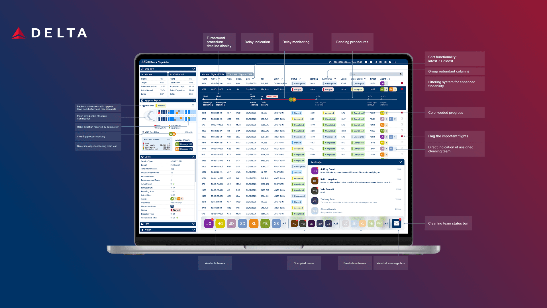 This project reimagines Delta Air Lines’ aircraft cleaning dispatch system, evolving it from a manual workflow into an automated and centralized dashboard that enhances communication between dispatchers and cleaners. The system supports Delta’s 2050 Net-Zero Carbon Emission goal.