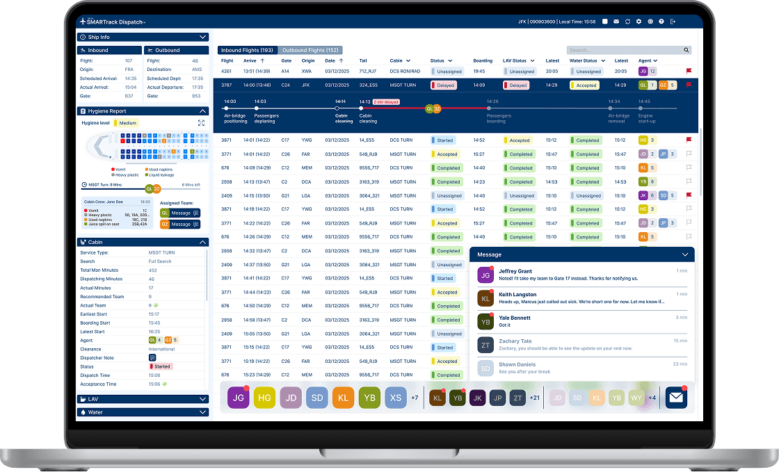 A new Hygiene Report section presents crew cleaning requests and notes in a structured, visual layout, enabling a clear handoff to the cleaning team and reducing miscommunication. Dispatchers can also message assigned cleaning agents directly from the Hygiene Report Section when needed.